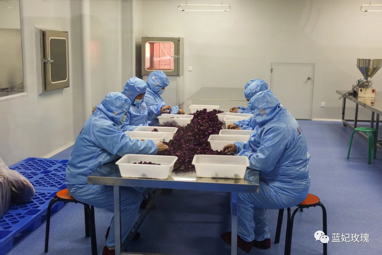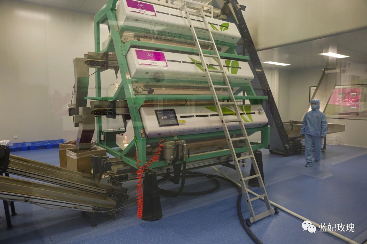主要生產(chǎn)玫瑰花瓣和玫瑰超微粉,走差異化競(jìng)爭(zhēng),是進(jìn)入玫瑰產(chǎn)業(yè)較晚的車偉給公司的定位。通過智能化色選機(jī)等自動(dòng)化設(shè)備對(duì)玫瑰花瓣進(jìn)行四級(jí)篩選、金屬檢測(cè)、機(jī)械研磨,不等色澤、大小的花瓣派上了不同用處,走進(jìn)了全國眾多知名食品企業(yè)和網(wǎng)紅烘焙店。